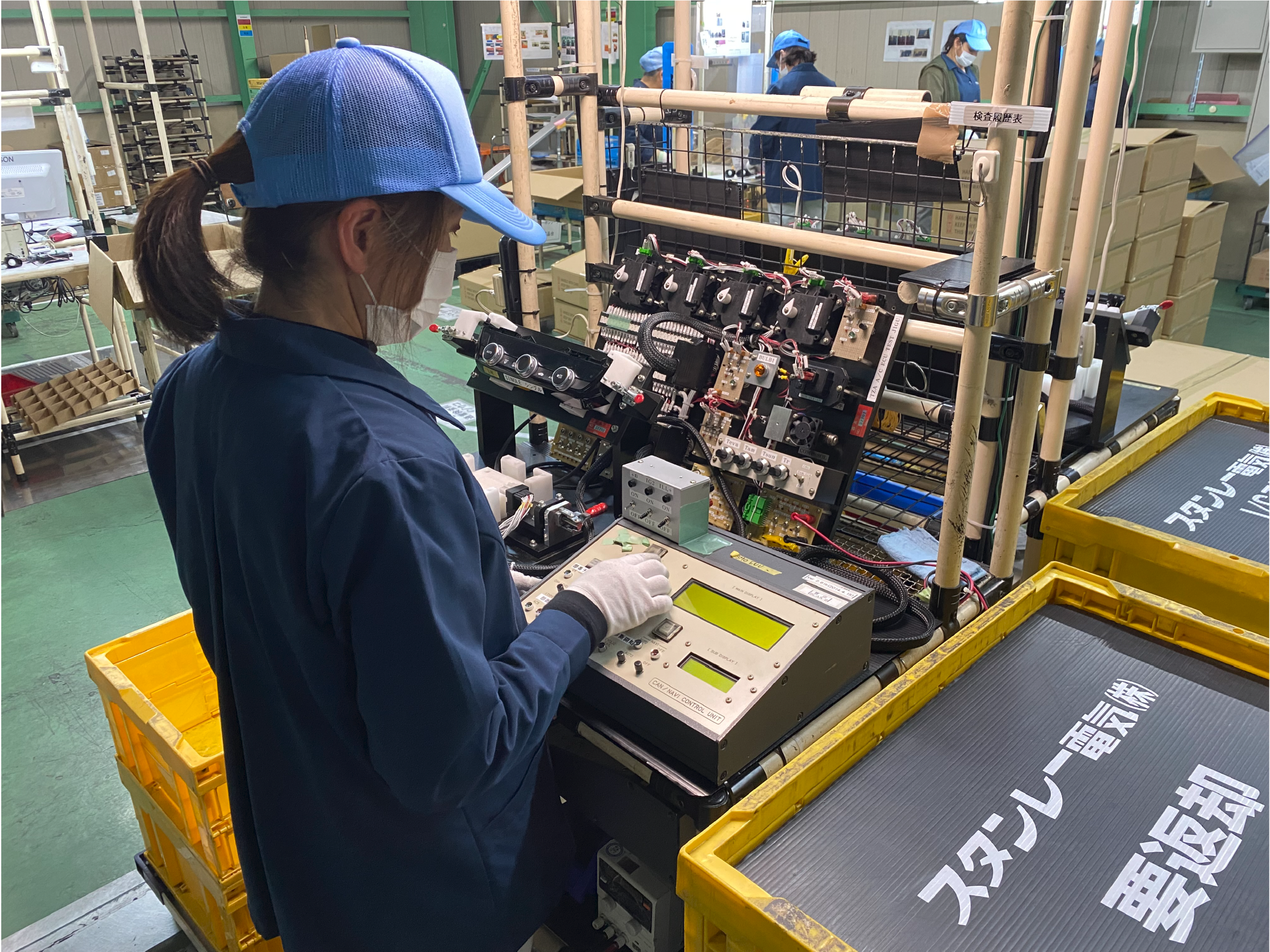 外装部品ヘッドライトやリアコンビネーションランプ、内装部品ヒーターコントロールや各種センサーの組立
